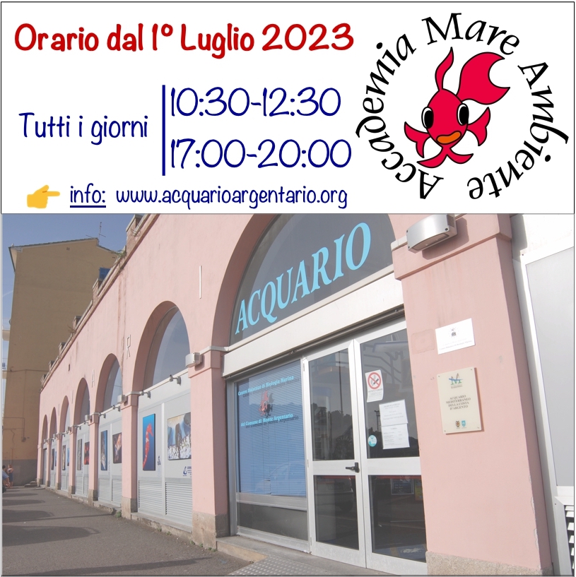 L'Acquario Mediterraneo dell'Argentario situato sul Lungomare dei Navigatori di Porto S.Stefano, dal mese di luglio cambia così l’orario di apertura al pubblico :