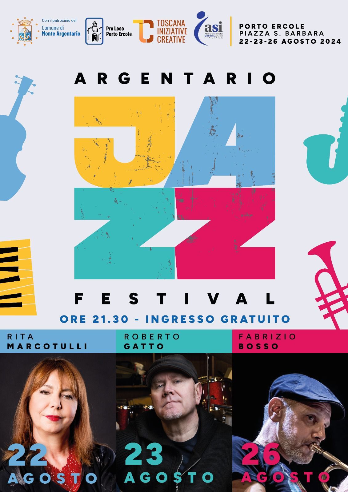 "Argentario Jazz Festival", Porto Ercole Piazza Santa Barbara 22 - 23 e 26 Agosto dalle ore 21.30