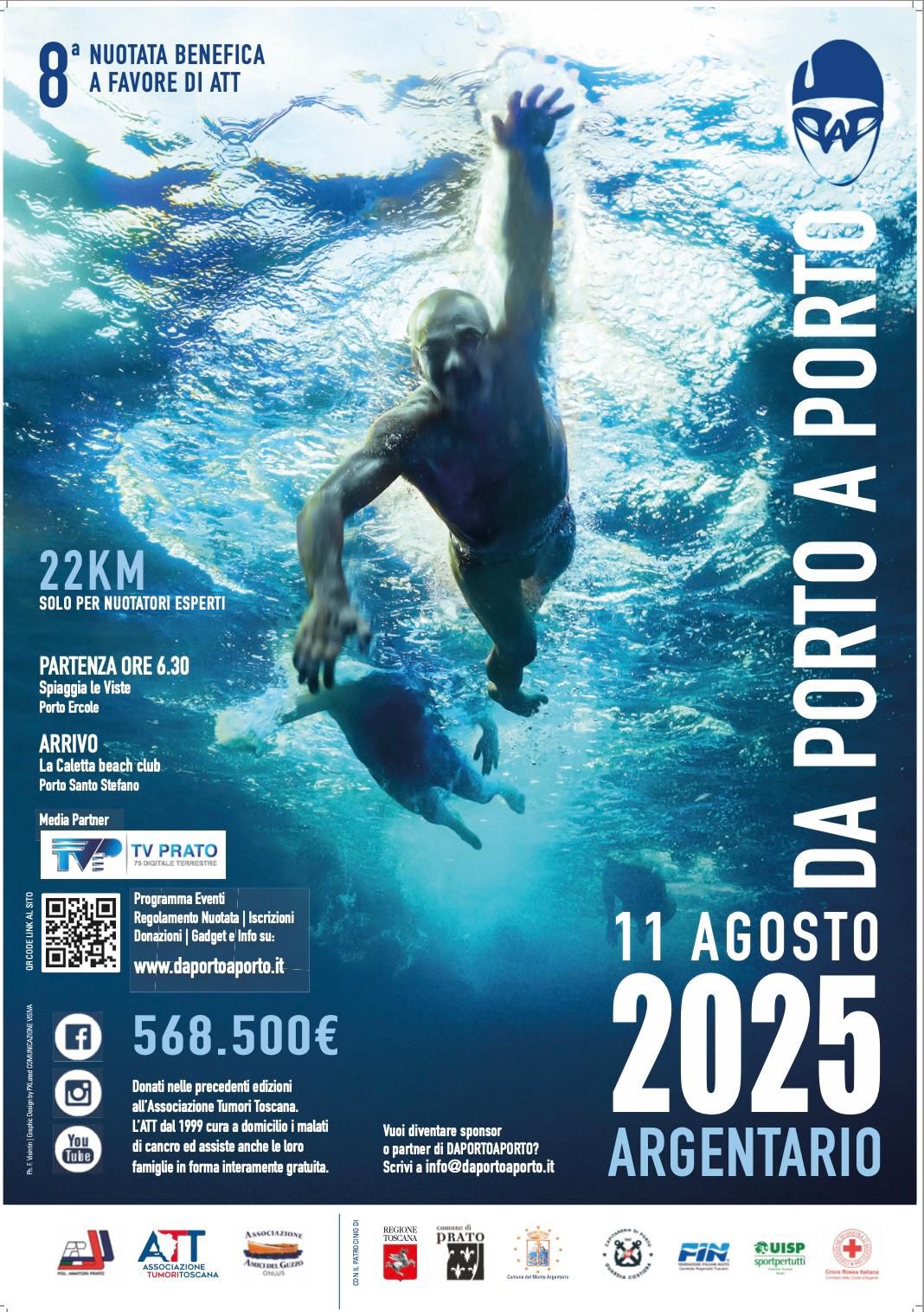 Da porto a porto VIII edizione della nuotata benefica a favore di ATT da Porto Ercole a Porto Santo Stefano